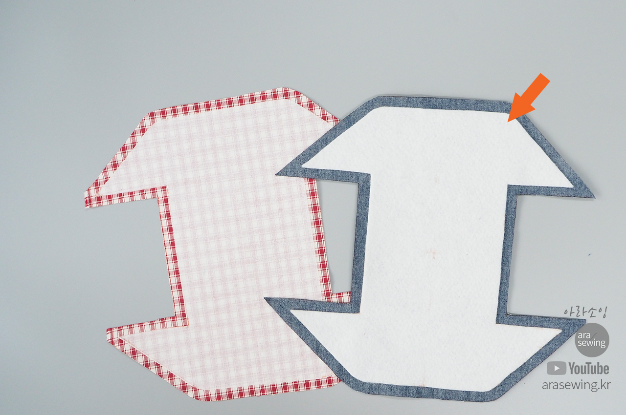 안감의 마개 부분을 박음질로 주머니 모양으로 만들어 준비합니다. 이때 밑에 부분은 시접을 넓게 줍니다.(동영상 참조)