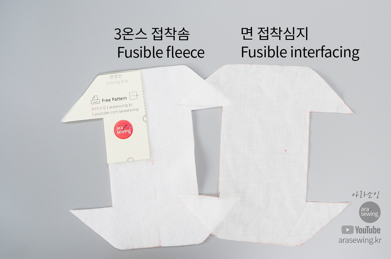 겉감, 안감에 접착솜, 접착심지를 다리미질로 열을 가해서 붙입니다.