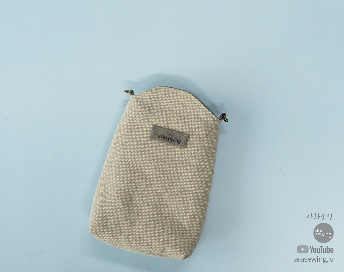 심플한 디자인의 미니 크로스백으로 휴대폰 가방으로 쓸 수 있습니다. 뒤에 주머니가 있어서 카드지갑을 수납할 수 있어요. 만들고 나서 산책 갈 때 자주 갖고 다녀요. 수납이 편합니다.