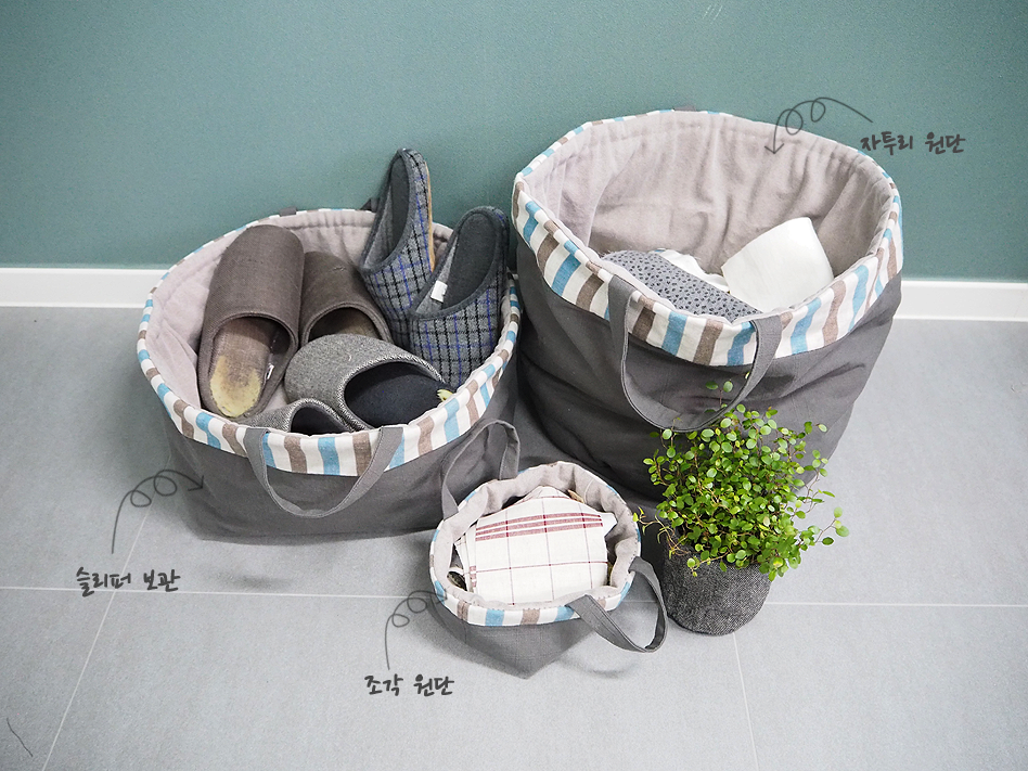 현관 중문 앞에 둘 슬리퍼 보관 바구니도 만들고 시리즈로 같이 모아보니 아주 마음에 든다.