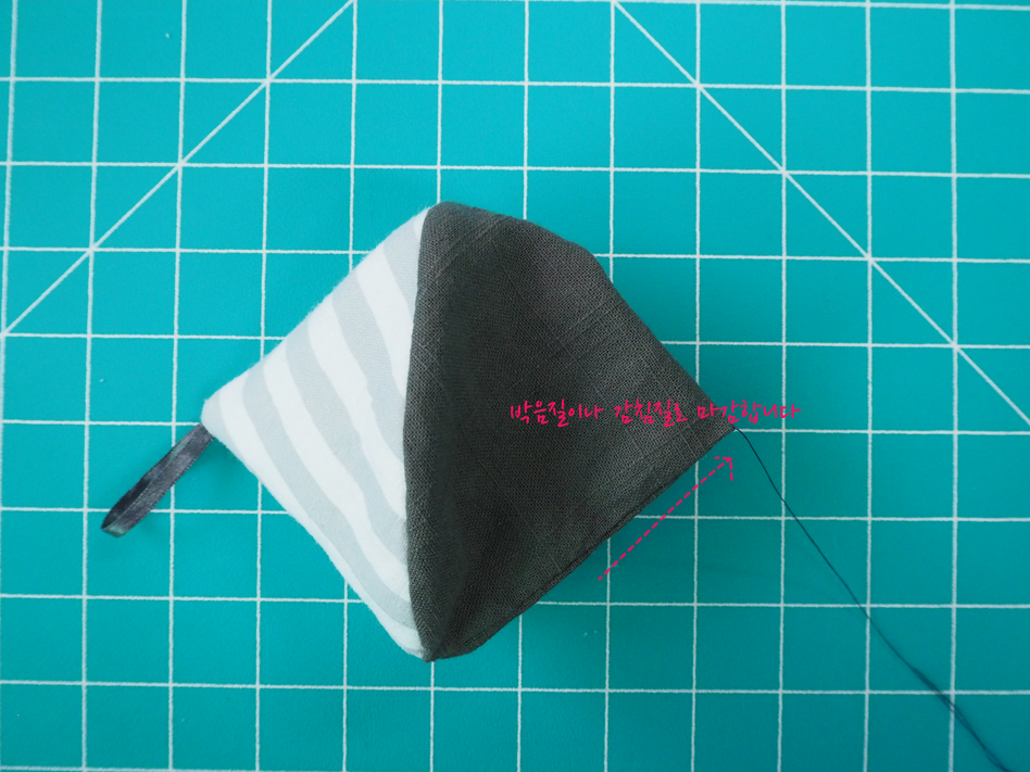 7. 그림처럼 창구멍을 남기고 박음질합니다.