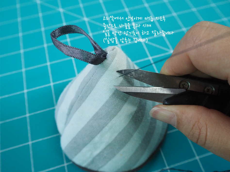 저는 감침질하고 고깔 끝에 매듭을 합니다.